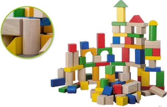 Wat er in deze ton zit? Maar liefst 100 gekleurde houten blokken van Jouéco! Gebruik de verschillende vormen om de mooiste gebouwen en figuren te stapelen! Maak je een klein huisje of misschien wel een heel kasteel? Je bepaalt het helemaal zelf!