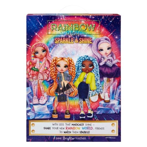 Spring door de andere kant van de regenboog voor meer kleur en glinsteringen dan ooit tevoren. Maak kennis met Sparkle & Shine™ Rosetta met benen die magisch glanzen. Haar benen zijn gevuld met een betoverende glittervloeistof. Schud ze en kijk hoe ze glanzen en glinsteren.Rosetta is van top tot teen gekleed in een zachte neonROZE tint. Haar mode (hoodie, T-shirt en rok) is voorzien van geweldige details en ze heeft bijpassende roze sneakers en een schattig aardbeientasje bij zich. Ze heeft supermooi, extra lang, roze haar met regenboogstrepen dat deels in een kroonvlecht is opgestoken en deels in losse krullen over haar rug golft. Ze heeft lange wimpers en glazen ogen.De speelse Rosetta is dol op kawaii en is inclusief een schattige kittenwaaier en een berenhoes voor haar telefoon. Ze is ook dol op zoetigheid en heeft een ijsje en taart bij zich. Omdat ze op 7 punten kan buigen, is ze makkelijk om aan te passen en superleuk om mee te spelen. Ook kun je met haar pronken op de inbegrepen poppenstandaard.