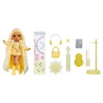 PRACHTIGE WINTERKLEDING: Sunny is van top tot teen gekleed in GEEL. Ze heeft prachtige, gedetailleerde kenmerken in haar mode (lange jas, twofer top, wikkelrok), bijpassende gele laarzen, tas en oorwarmers. Haar prachtige gele haar is gedeeltelijk naar achteren getrokken in een kleine paardenstaart op de bovenkant van haar hoofd met lange, vloeiende golven. Ze heeft lange wimpers en glazen ogen. En haar gezicht glinstert in het geel.