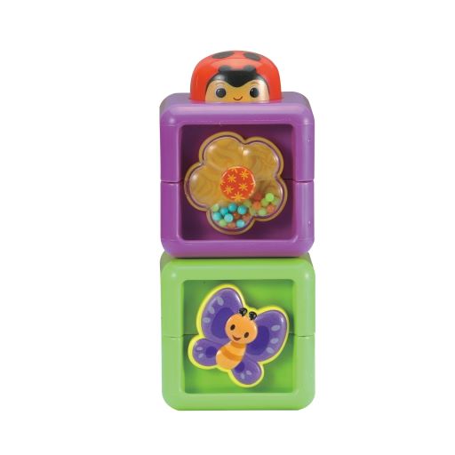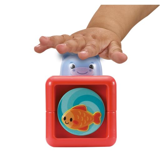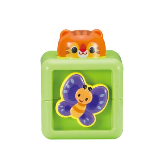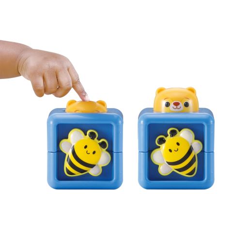 - Door blokken te stapelen en dieren in te drukken ontdekken kinderen vrolijke geluiden, cijfers en melodietjes.