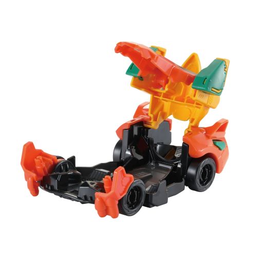 • transformeert van dinosaurus naar voertuig